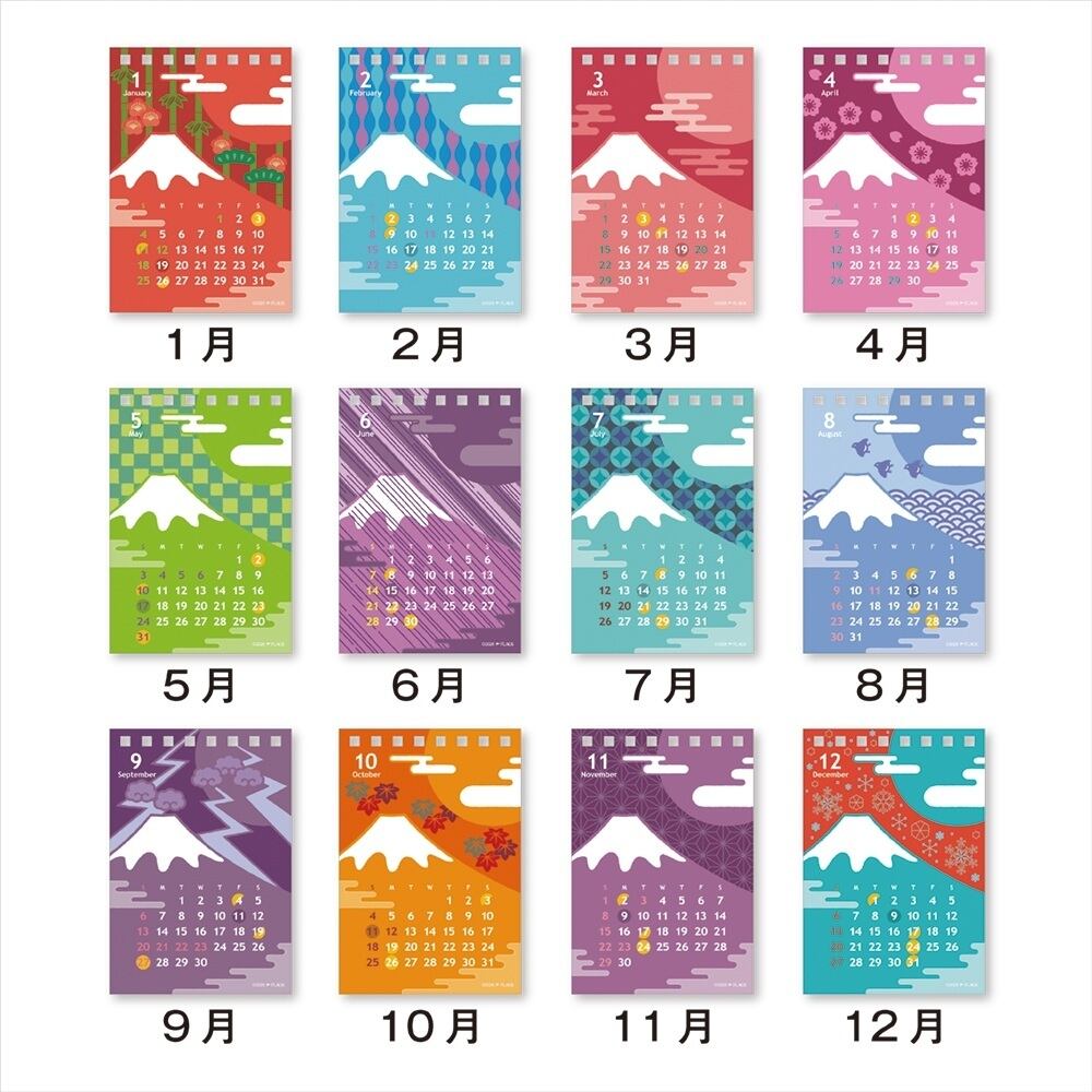 富士山 伝統色 和柄 ポップ 和ポップ ナチュラル クラフト 満ち欠け 満月 新月 2026年 イラスト オリジナル キャラクター のんびり アート かわいい 雑貨 令和8年 令和八年